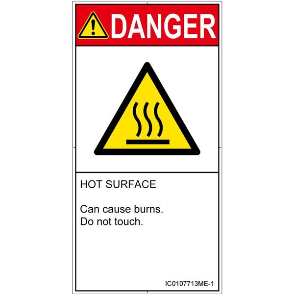PL警告表示ラベル(ISO準拠)│熱的な危険:表面高温│IC0107713│危険│Mサイズ│英語(タテ)│10枚 IC0107713ME-1(直送品)