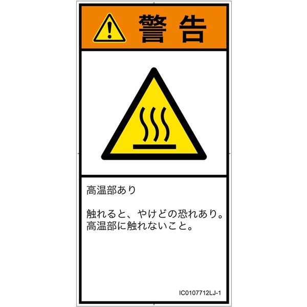 PL警告表示ラベル(ISO準拠)│熱的な危険:表面高温│IC0107712│警告│Lサイズ│日本語(タテ)│6枚 IC0107712LJ-1(直送品)