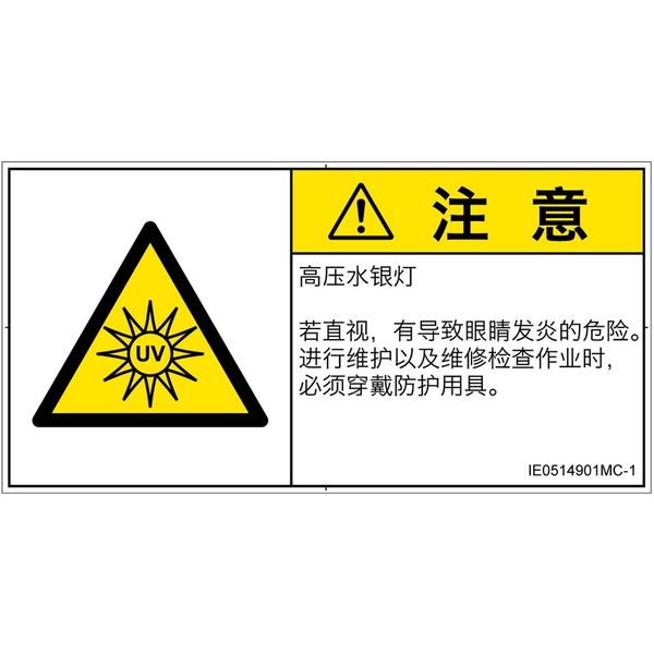 | フォーマット準拠規格 | ISO 3864-2:2016、ISO 3864-1:2011 | 危険の種類 | 放射から生じる危険 紫外線 |