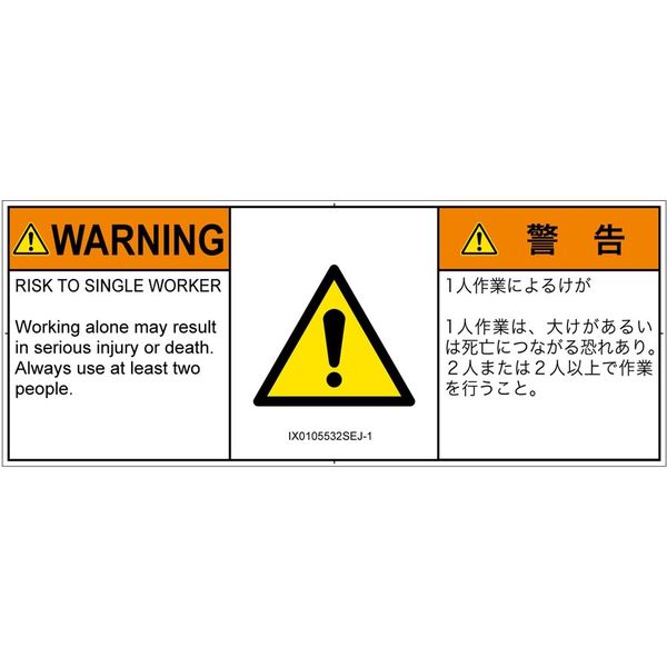 | 商品の特徴 | ●1人作業によるけが●1人作業は、大けがあるいは死亡につながる恐れあり。●2人または2人以上で作業を行うこと。●RISK TO SINGLE WORKER●Working alone may result in serious injury or death.●Always use at least two people. | ||