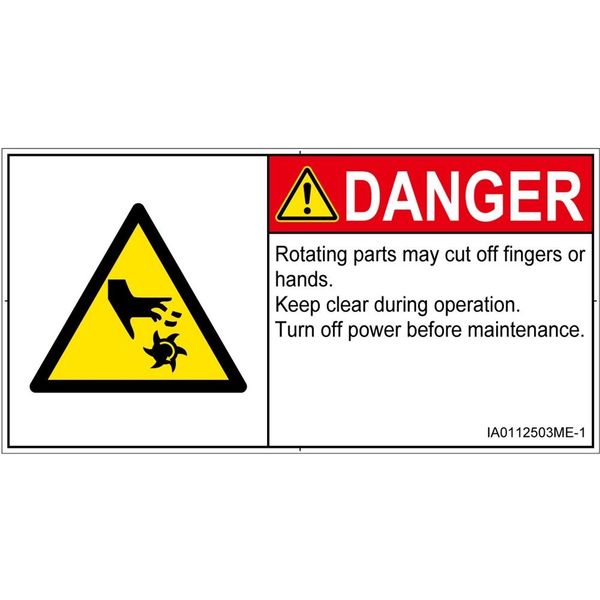 | 商品の特徴 | ●Rotating parts may cut off fingers or hands.●Keep clear during operation.●Turn off power before maintenance. | ||