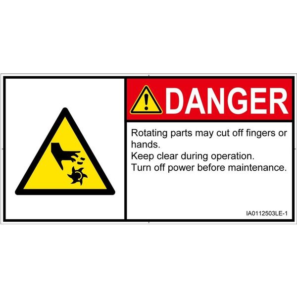 | フォーマット準拠規格 | ISO 3864-2:2016、ISO 3864-1:2011 | 危険の種類 | 機械的な危険 切断(回転部) |