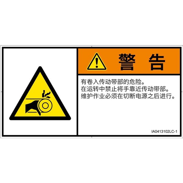 | 危険の種類 | 機械的な危険 引き込み(ベルト) | ラベルサイズ | W122mm×H62mm |