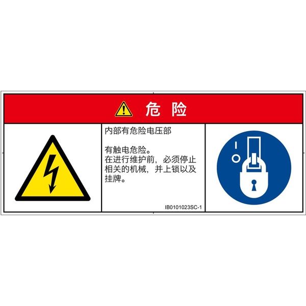 | ラベルサイズ | W103mm×H42mm | 危険の種類 | 電気的な危険 感電 |