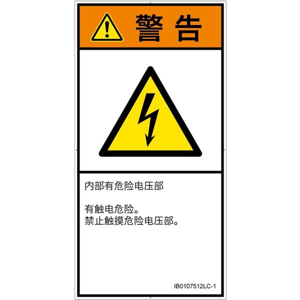 PL警告表示ラベル(ISO準拠)│電気的な危険:感電│IB0107512│警告│Lサイズ│簡体字(タテ)│6枚 IB0107512LC-1(直送品)