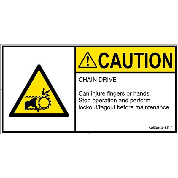 | 危険の種類 | 機械的な危険 引き込み(チェーン) | ラベルサイズ | W122mm×H62mm |