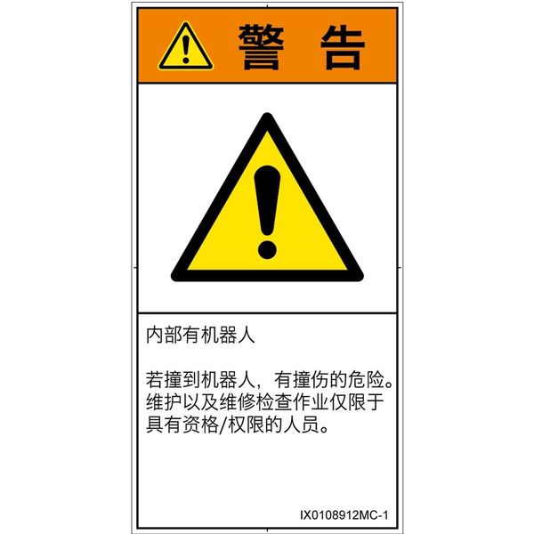 | フォーマット準拠規格 | ISO 3864-2:2016、ISO 3864-1:2011 | シンボルマーク準拠規格 | ISO 7010:2011[W001]準拠、SEMI S1-1015準拠 |