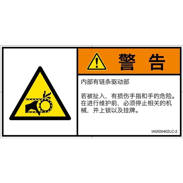| 商品の特徴 | ●チェーン駆動部あり●引き込まれると、指や手を損傷する恐れあり。●保守前に、該当する機械を停止し、ロックアウトおよびタグアウトすること。 | ||