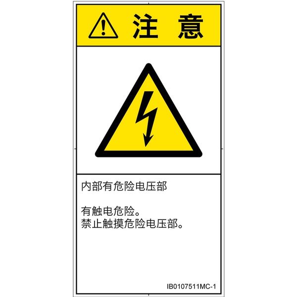 PL警告表示ラベル(ISO準拠)│電気的な危険:感電│IB0107511│注意│Mサイズ│簡体字(タテ)│10枚 IB0107511MC-1(直送品)