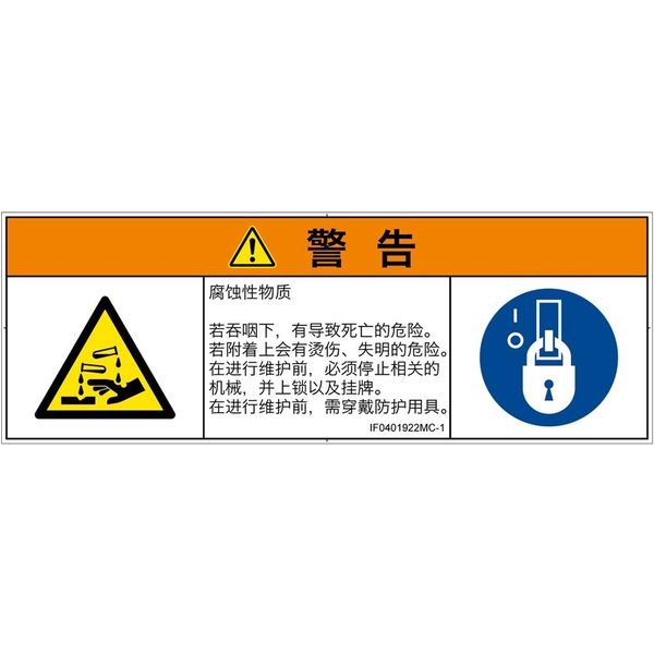 | ラベルサイズ | W132mm×H47mm | 危険の種類 | 材料・物質による危険 腐食性物質 |