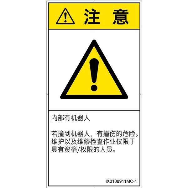 | 対象者 | オペレータ | シンボルマーク準拠規格 | ISO 7010:2011[W001]準拠、SEMI S1-1015準拠 |