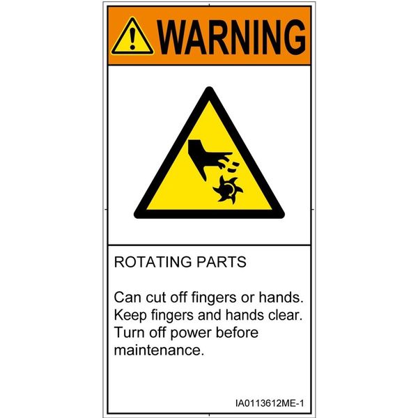 | 商品の特徴 | ●ROTATING PARTS●Can cut off fingers or hands.●Keep fingers and hands clear.●Turn off power before maintenance. | ||
