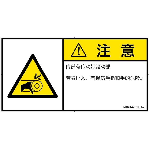 | 危険の種類 | 機械的な危険 引き込み(ベルト) | ラベルサイズ | W122mm×H62mm |