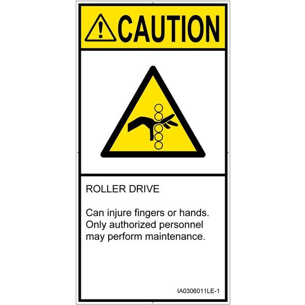 | 商品の特徴 | ●ROLLER DRIVE●Can injure fingers or hands.●Only authorized personnel may perform maintenance. | ||