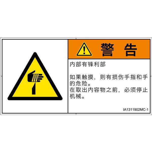 PL警告表示ラベル(ISO準拠)│機械的な危険:切傷│IA1311902│警告│Mサイズ│簡体字(ヨコ)│10枚 IA1311902MC-1(直送品)