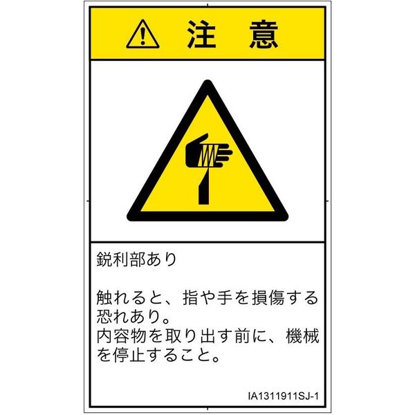 PL警告表示ラベル(ISO準拠)│機械的な危険:切傷│IA1311911│注意│Sサイズ│日本語(タテ)│16枚 IA1311911SJ-1(直送品)
