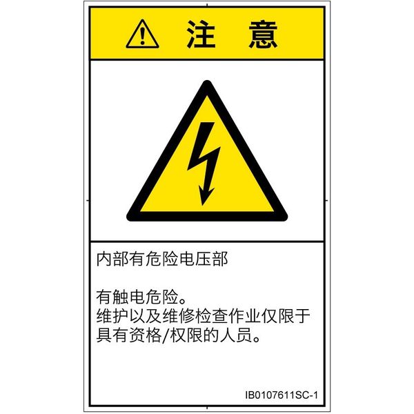 PL警告表示ラベル(ISO準拠)│電気的な危険:感電│IB0107611│注意│Sサイズ│簡体字(タテ)│16枚 IB0107611SC-1(直送品)