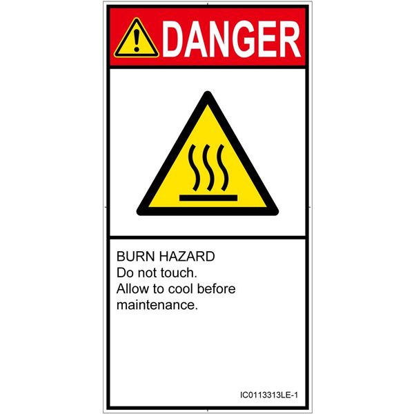 PL警告表示ラベル(ISO準拠)│熱的な危険:表面高温│IC0113313│危険│Lサイズ│英語(タテ)│6枚 IC0113313LE-1(直送品)