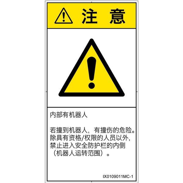 | 対象者 | オペレータ | シンボルマーク準拠規格 | ISO 7010:2011[W001]準拠、SEMI S1-1015準拠 |