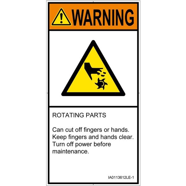 | 商品の特徴 | ●ROTATING PARTS●Can cut off fingers or hands.●Keep fingers and hands clear.●Turn off power before maintenance. | ||