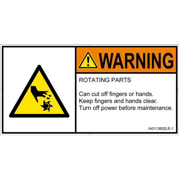 | フォーマット準拠規格 | ISO 3864-2:2016、ISO 3864-1:2011 | 危険の種類 | 機械的な危険 切断(回転部) |