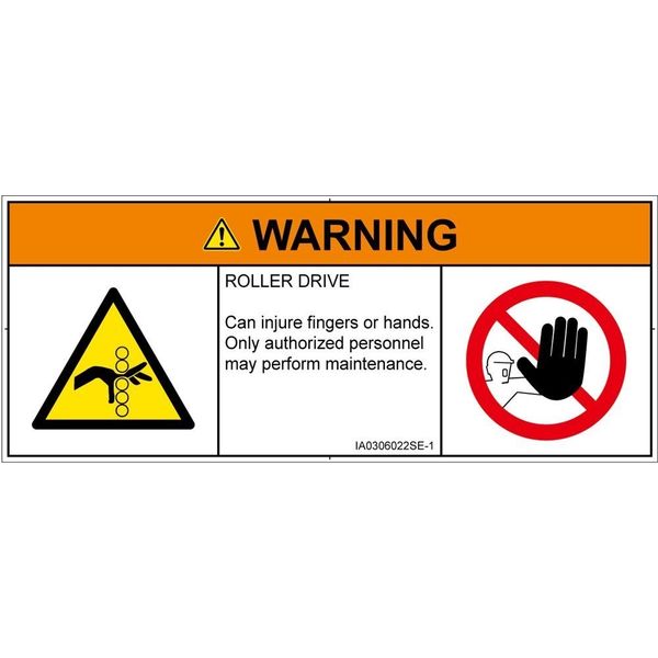| 商品の特徴 | ●ROLLER DRIVE●Can injure fingers or hands.●Only authorized personnel may perform maintenance. | ||