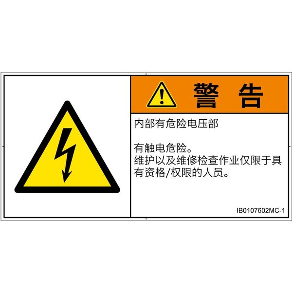 PL警告表示ラベル(ISO準拠)│電気的な危険:感電│IB0107602│警告│Mサイズ│簡体字(ヨコ)│10枚 IB0107602MC-1(直送品)