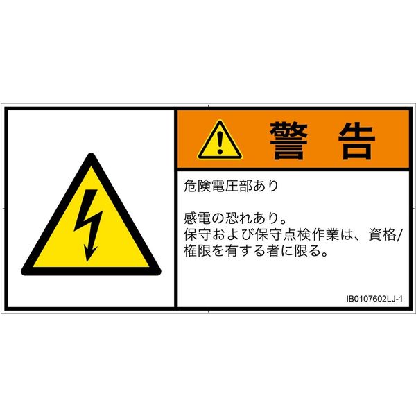 PL警告表示ラベル(ISO準拠)│電気的な危険:感電│IB0107602│警告│Lサイズ│日本語(ヨコ)│6枚 IB0107602LJ-1(直送品)