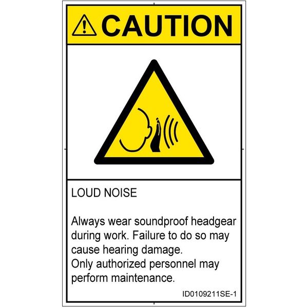 | 商品の特徴 | ●LOUD NOISE●Always wear soundproof headgear during work.●Failure to do so may cause hearing damage.●Only authorized personnel may perform maintenance. | ||