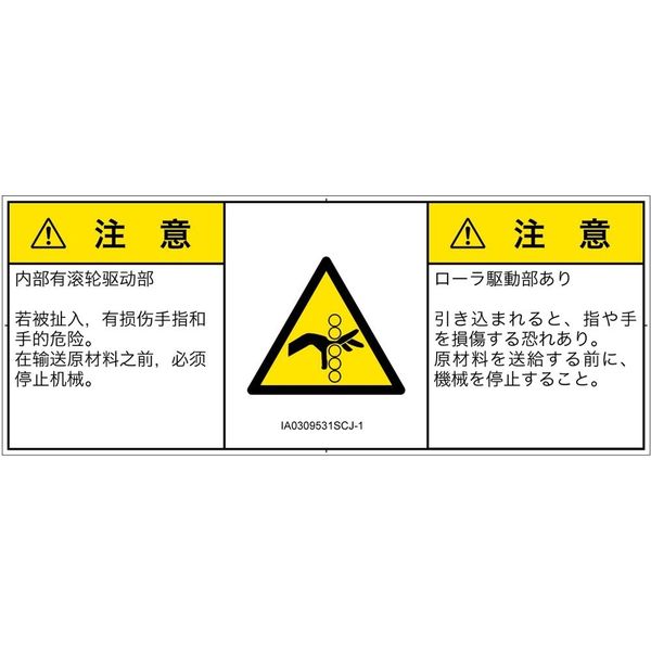 | ラベルサイズ | W105mm×H42mm | 危険の種類 | 機械的な危険 引き込み(ローラ) |