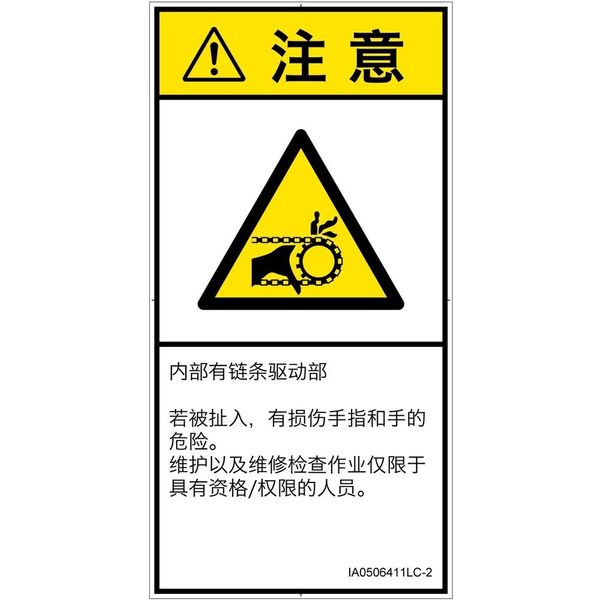 | 商品の特徴 | ●チェーン駆動部あり●引き込まれると、指や手を損傷する恐れあり。●保守および保守点検作業は、資格/権限を有する者に限る。 | ||