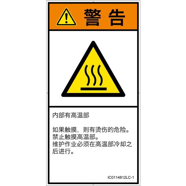 PL警告表示ラベル(ISO準拠)│熱的な危険:表面高温│IC0114812│警告│Lサイズ│簡体字(タテ)│6枚 IC0114812LC-1(直送品)