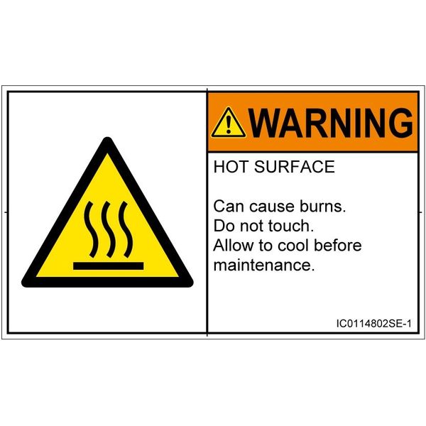 PL警告表示ラベル(ISO準拠)│熱的な危険:表面高温│IC0114802│警告│Sサイズ│英語(ヨコ)│16枚 IC0114802SE-1(直送品)