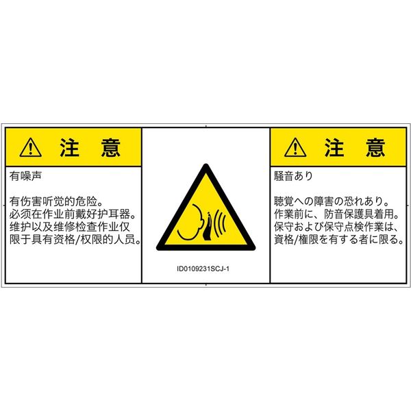 | ラベルサイズ | W105mm×H42mm | 危険の種類 | 騒音による危険 突然の騒音 |