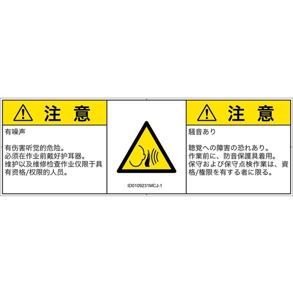 | ラベルサイズ | W140mm×H47mm | 危険の種類 | 騒音による危険 突然の騒音 |