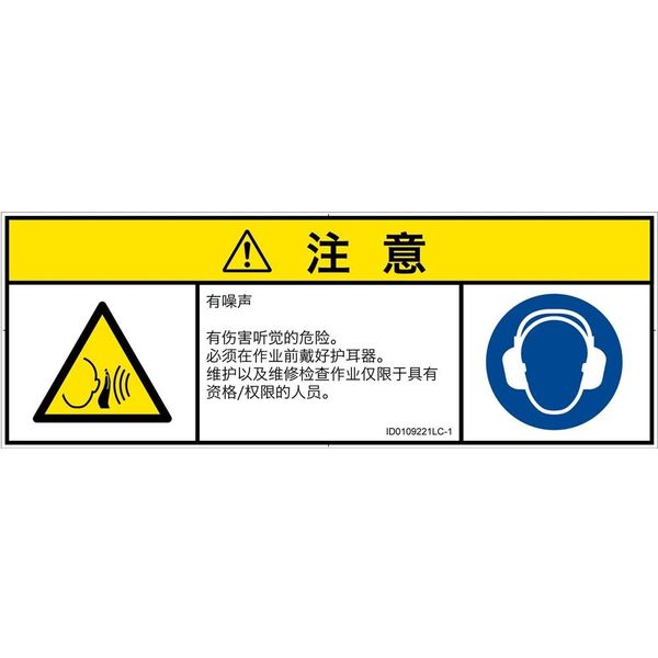 | ラベルサイズ | W172mm×H62mm | 危険の種類 | 騒音による危険 突然の騒音 |