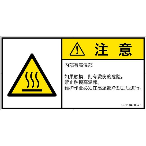 PL警告表示ラベル(ISO準拠)│熱的な危険:表面高温│IC0114801│注意│Lサイズ│簡体字(ヨコ)│6枚 IC0114801LC-1(直送品)