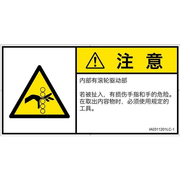 | ラベルサイズ | W122mm×H62mm | 危険の種類 | 機械的な危険 引き込み(ローラ) |