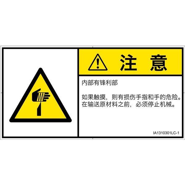 PL警告表示ラベル(ISO準拠)│機械的な危険:切傷│IA1310301│注意│Lサイズ│簡体字(ヨコ)│6枚 IA1310301LC-1(直送品)