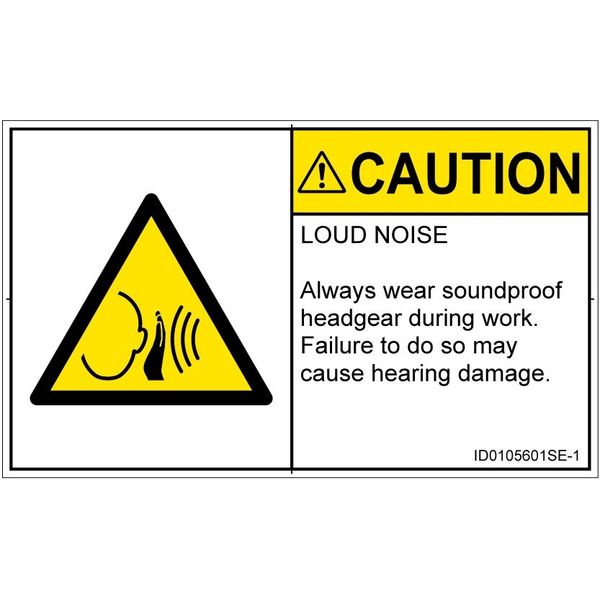 | 危険の種類 | 騒音による危険 突然の騒音 | フォーマット準拠規格 | ISO 3864-2:2016、ISO 3864-1:2011 |