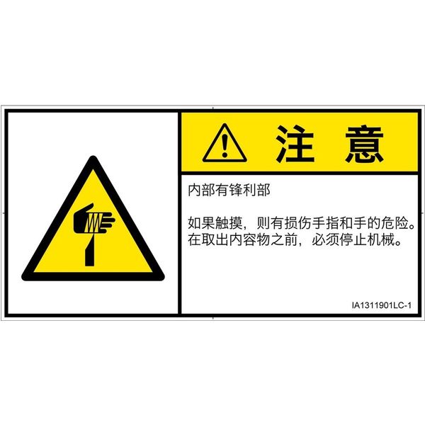 PL警告表示ラベル(ISO準拠)│機械的な危険:切傷│IA1311901│注意│Lサイズ│簡体字(ヨコ)│6枚 IA1311901LC-1(直送品)