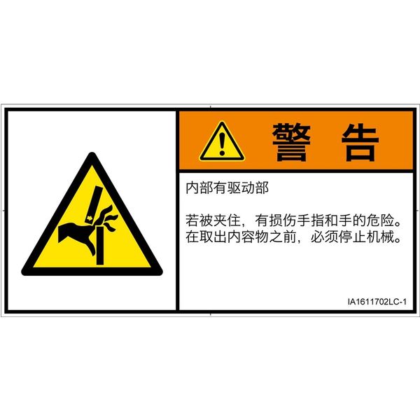 | 危険の種類 | 機械的な危険 はさまれ | ラベルサイズ | W122mm×H62mm |