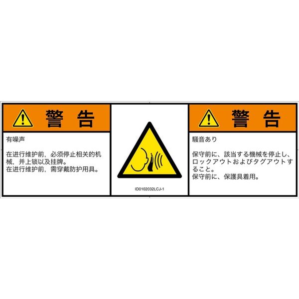| ラベルサイズ | W191mm×H62mm | 危険の種類 | 騒音による危険 突然の騒音 |
