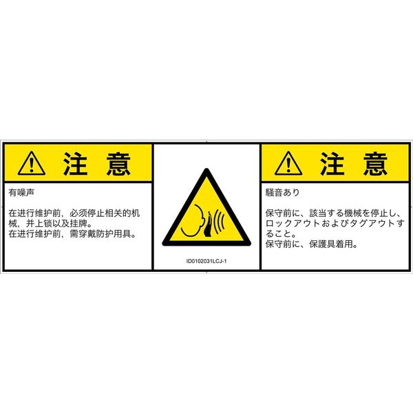 | ラベルサイズ | W191mm×H62mm | 危険の種類 | 騒音による危険 突然の騒音 |