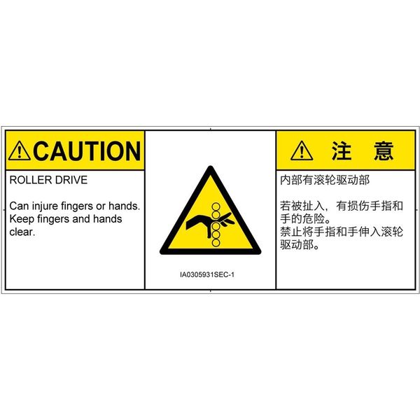 | ラベルサイズ | W105mm×H42mm | 危険の種類 | 機械的な危険 引き込み(ローラ) |