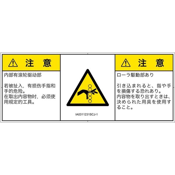 | ラベルサイズ | W105mm×H42mm | 危険の種類 | 機械的な危険 引き込み(ローラ) |