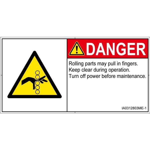 | 商品の特徴 | ●Rolling parts may pull in fingers.●Keep clear during operation.●Turn off power before maintenance. | ||