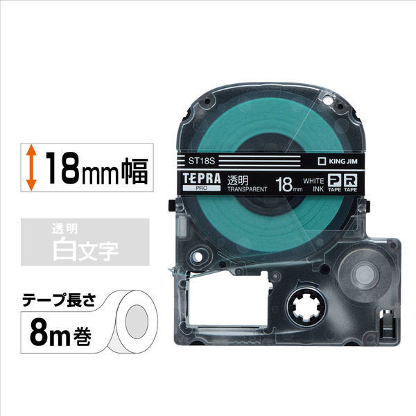 本商品:テプラ TEPRA PROテープ スタンダード 幅18mm 透明ラベル(白文字) ST18S 1個 キングジム(わけあり品) |