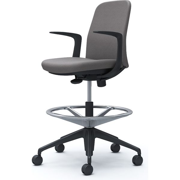 【設置込】オカムラ ライブス エントリーチェア ハイチェア 5本脚 デザインアーム インターロック 黒×グレー 1脚(直送品)