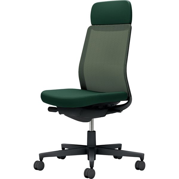 ヘッドレスト 無し その他商品仕様 ●機能:ガス圧昇降式、オートフィット シンクロロッキング、ロッキング反力 簡易調節機能(5段階)、ロッキング角度 範囲調節機能(4段階・角度: 0、6、13、20°)、座の奥行き調節(ストローク:50mm)、座の高さ調節(ストローク:90mm)、ポスチャーサポートシート、ショルダーサポート●キャスター種類:木質のフローリングのような硬い床でも床に傷をつけにくいポリウレタン巻きキャスターです。●カラー: 本体:ブラック 座:ディープグリーン背:ディープグリーン
